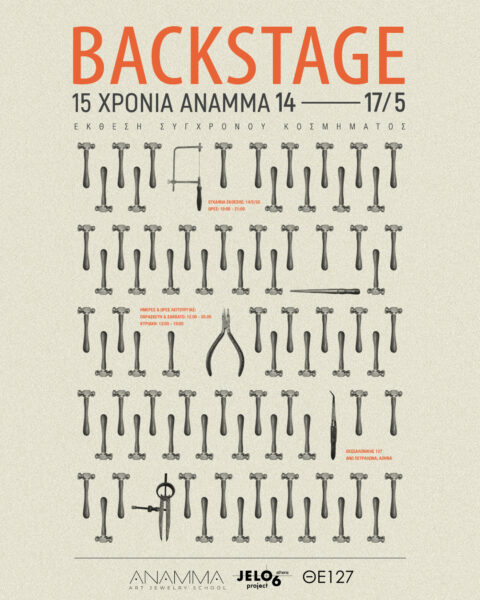 On the occasion of its 15th anniversary, ANAMMA Contemporary Jewelry School is organizing a group exhibition by its students, titled BACKSTAGE; a comprehensive jewelry exhibition where tradition and contemporary practice coexist in an open dialogue.